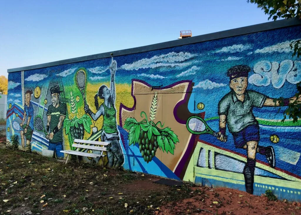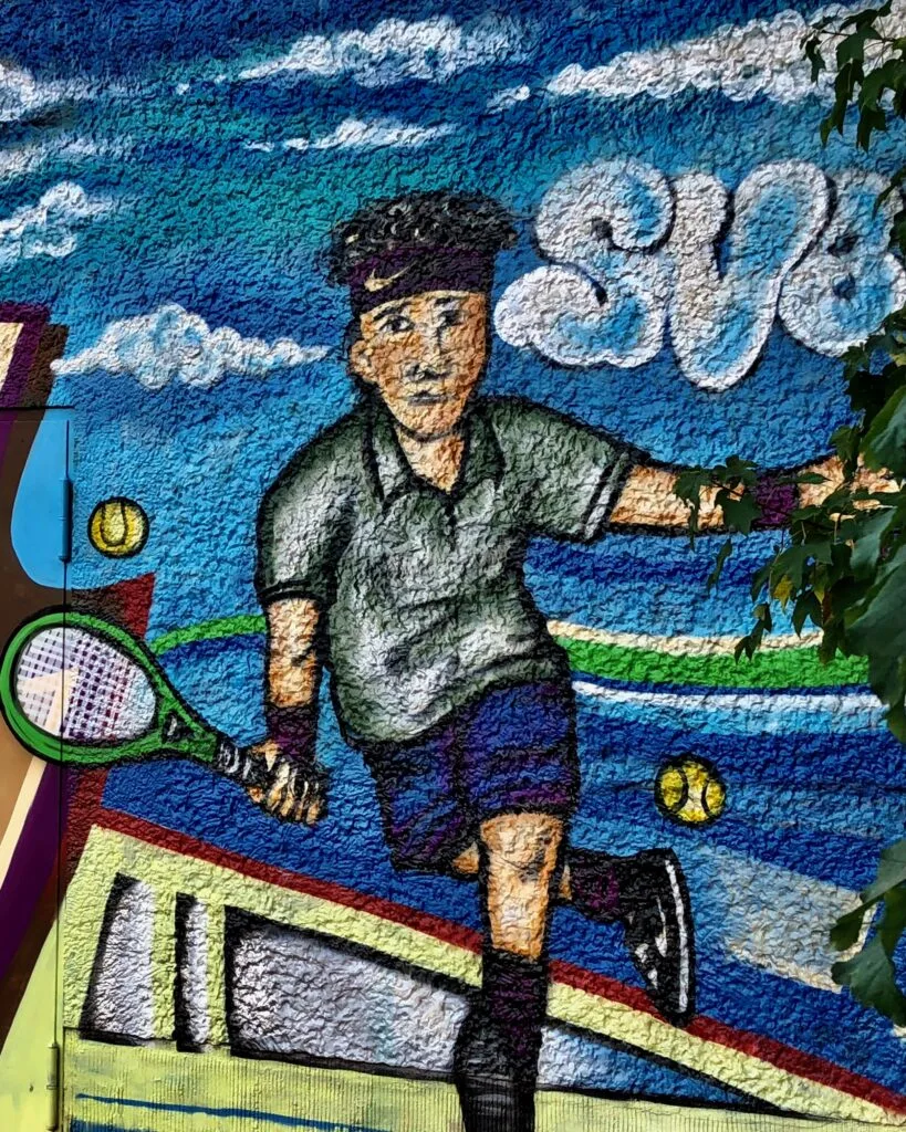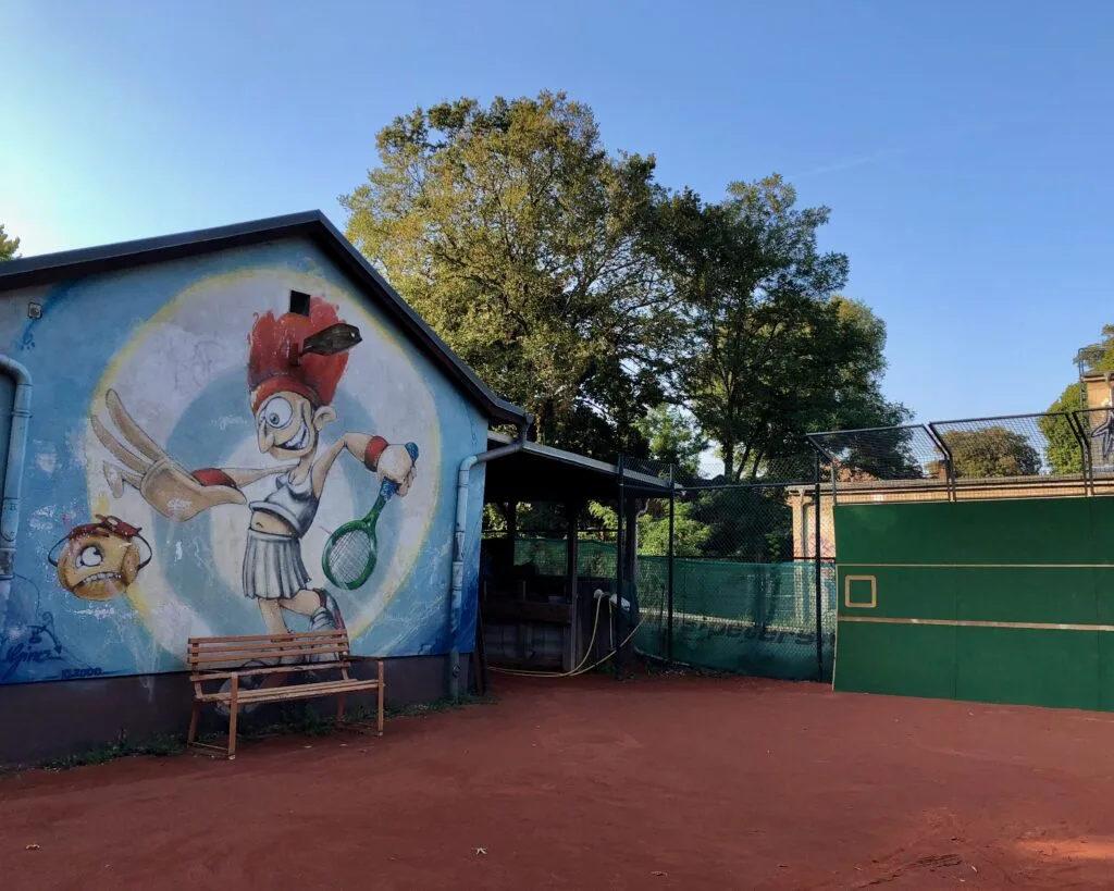 When the “Mitte” opened its doors in 1989, it commissioned several of the neighborhood street artists to paint its wind tents on the inside and outside of the courts, accommodating the tastes of 200 members from 23 different nations who “have peacefully found each other in tennis, an ideal pastime. We are the club that lies in the melting pot of cultures…”