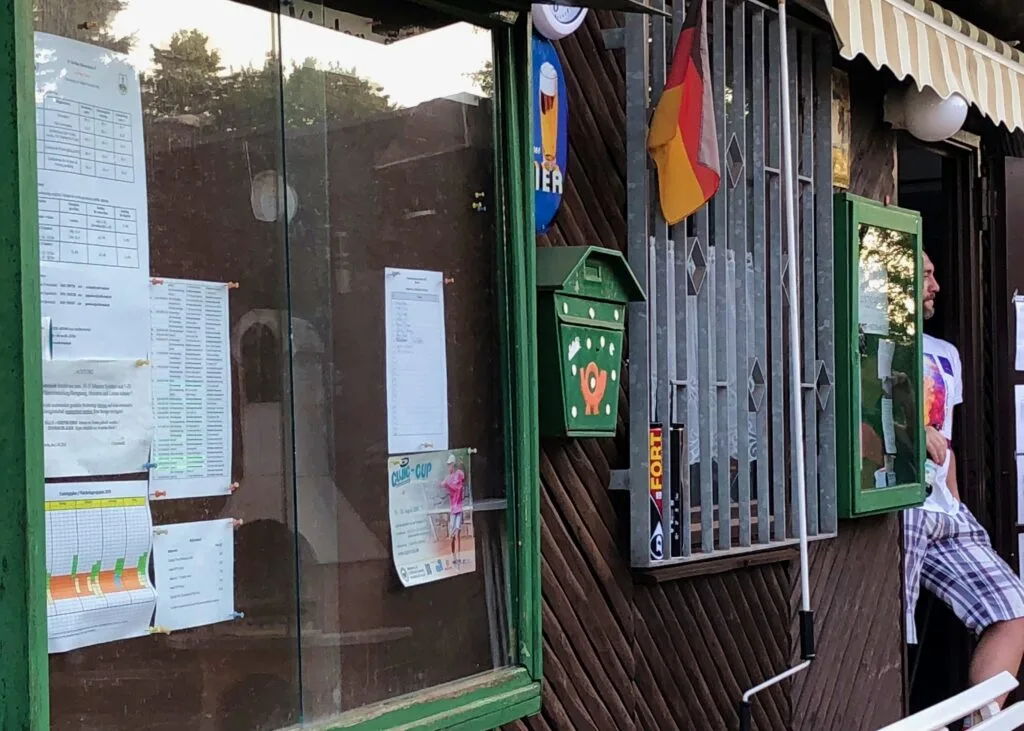 A proprietor looks out on the bier garten of the Tennis Club SV Berliner Brauereien e.V. It’s a grand tradition across the city, from the exclusive clubs in Grunewald to those of the former DDR, that competitive play earns a Schöfferhofer cool down. Whether the patio furniture is plastic or wrought iron usually depends on the class of the members.